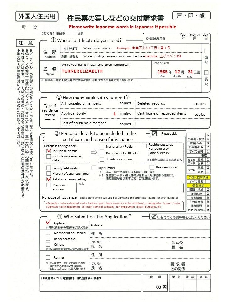 - They will ask you to fill out a small form, where you select which information you want on your Juminhyo.